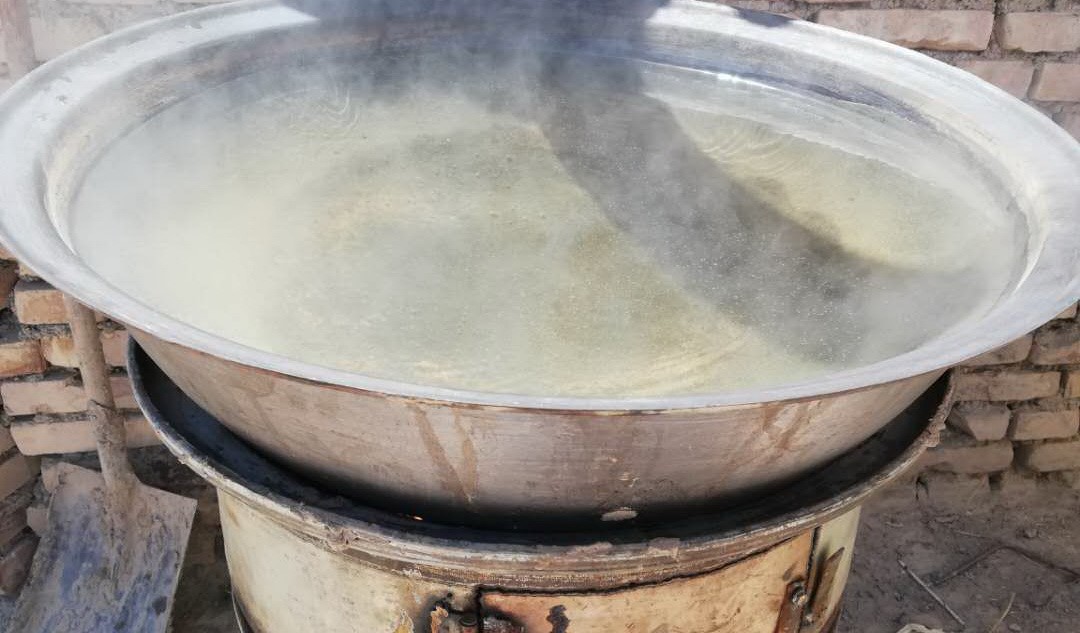 漓液滶成汤,待冷用桶装。